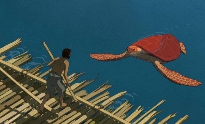 Мужчина попадает на необитаемый остров. Ему удаётся построить плот, но далеко уплыть не получается — красная черепаха пресекает все его попытки к бегству.
