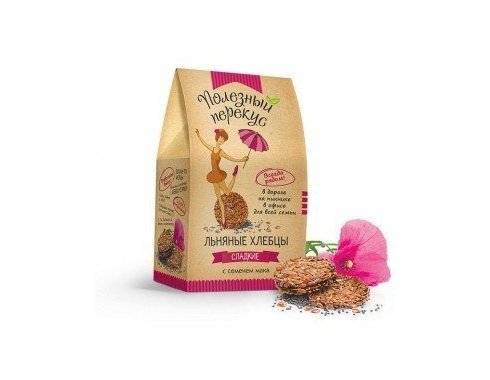 3. Льняные хлебцы сладкие "Полезный перекус" с семенем мака на фруктозе, 100гр.