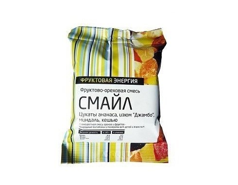 Смайл - Веселая разноцветная смесь орехов и фруктов: миндаль, кешью, ананас, изюм Джамбо.