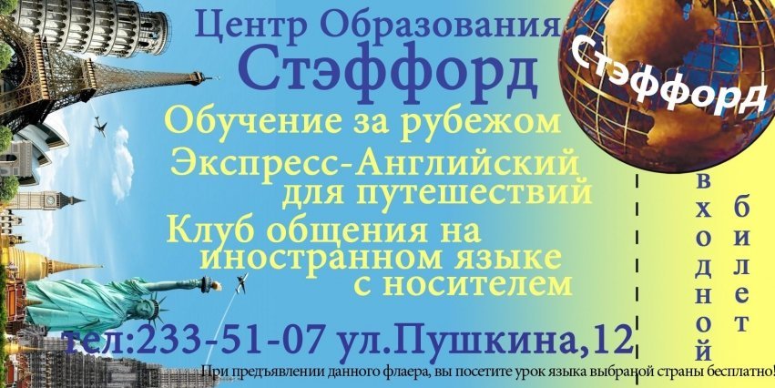Вы можете посетить одно пробное занятие любого иностранного языка, преподаваемого в нашем центре, распечатав «Входной билет».